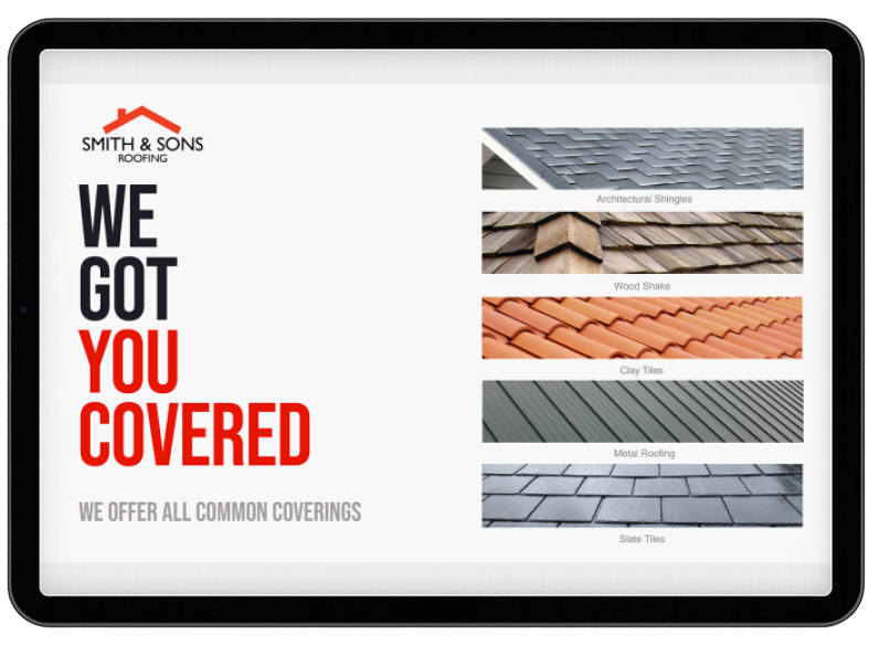 Showcase your roofing company’s expertise with sleek, customizable roof sales presentations. Elevate your brand and impress clients with a professional roofing sales pitch book.