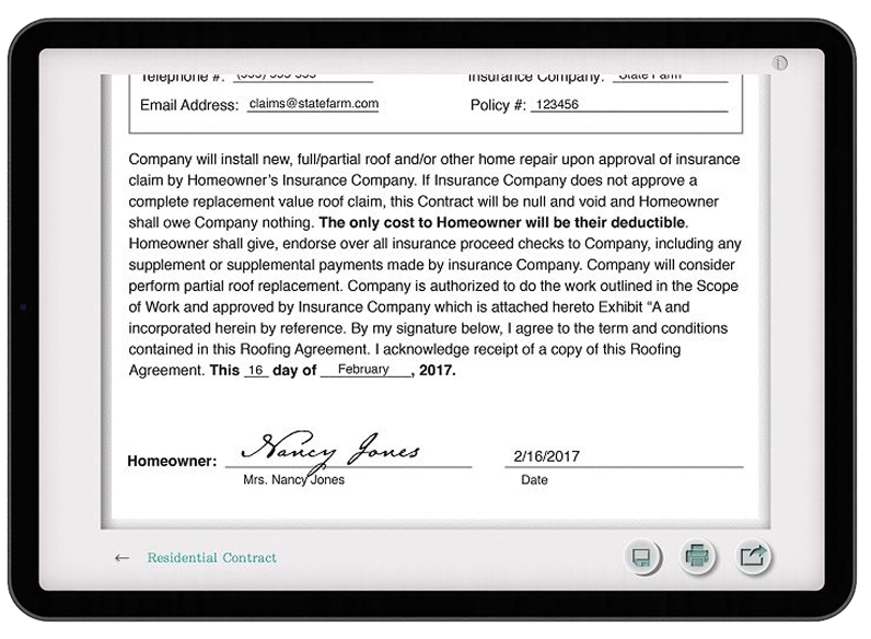 Seal the deal faster with digital contract signing. Secure, convenient, and paperless, sign and manage contracts directly from your device, all with the help of our roofing software.